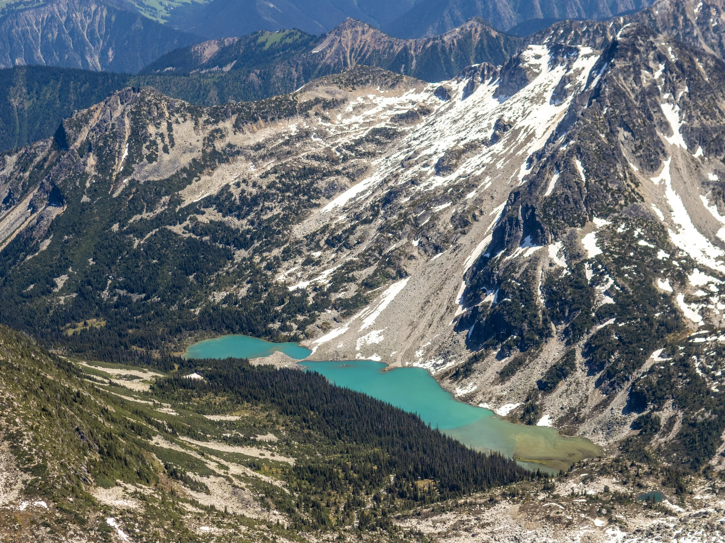 Views from the col east of Barber. More beautiful lakes, the lower one we would pass a few hours later and enjoy a very refreshing swim.