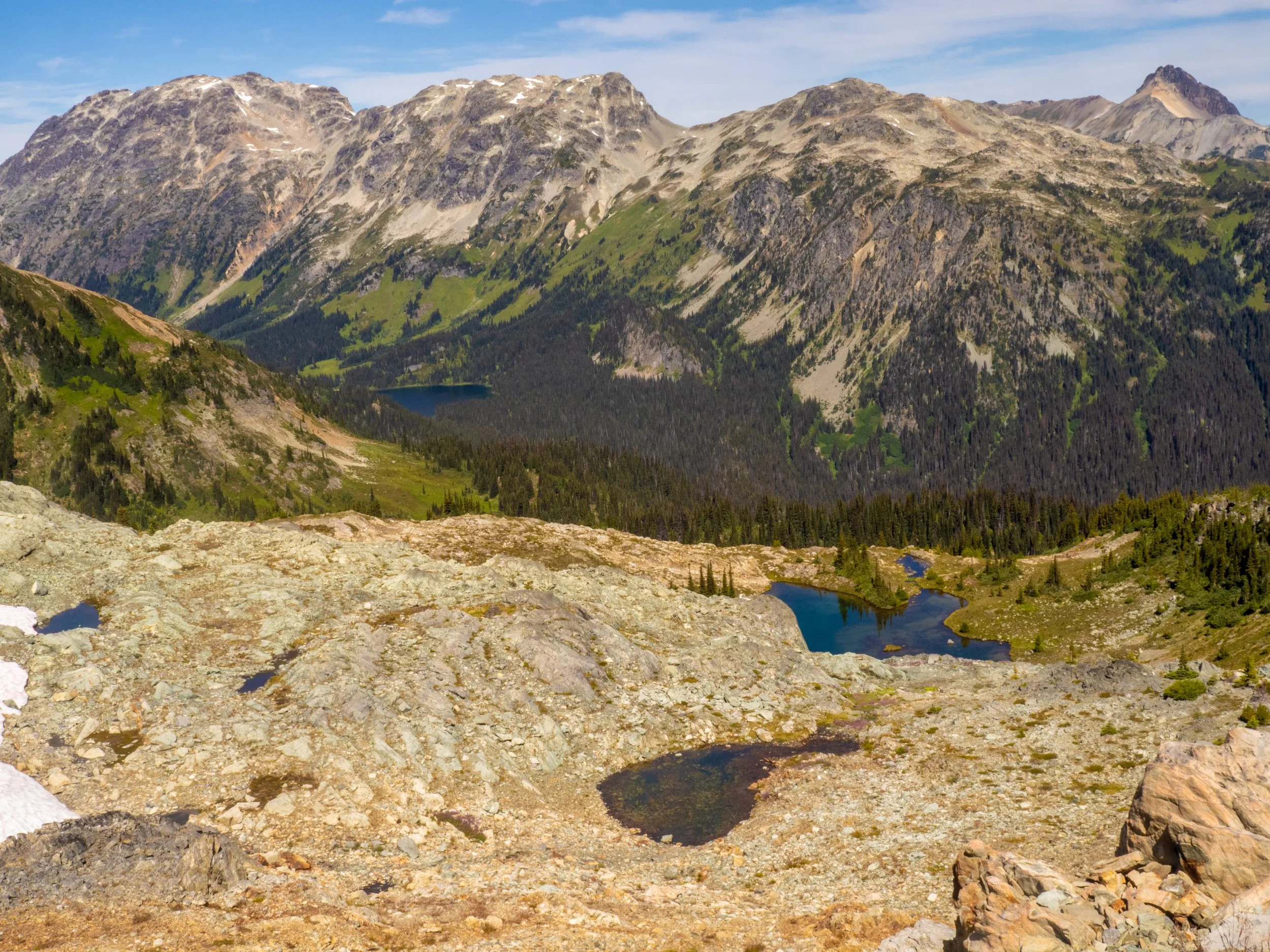 Leaving the clearcuts at the trailhead, the trail meanders up and over the Chain Lakes, climbing towards consistently pretty alpine meadows and lakes. We likely crossed 8+ beautiful lakes in the first couple hours, and were shocked that we did not see a single other person, or signs of camping. This is an incredible area, but doesn’t see the traffic that other nearby sites do, I guess partially due to the worse access up the Owl Creek FSR?
