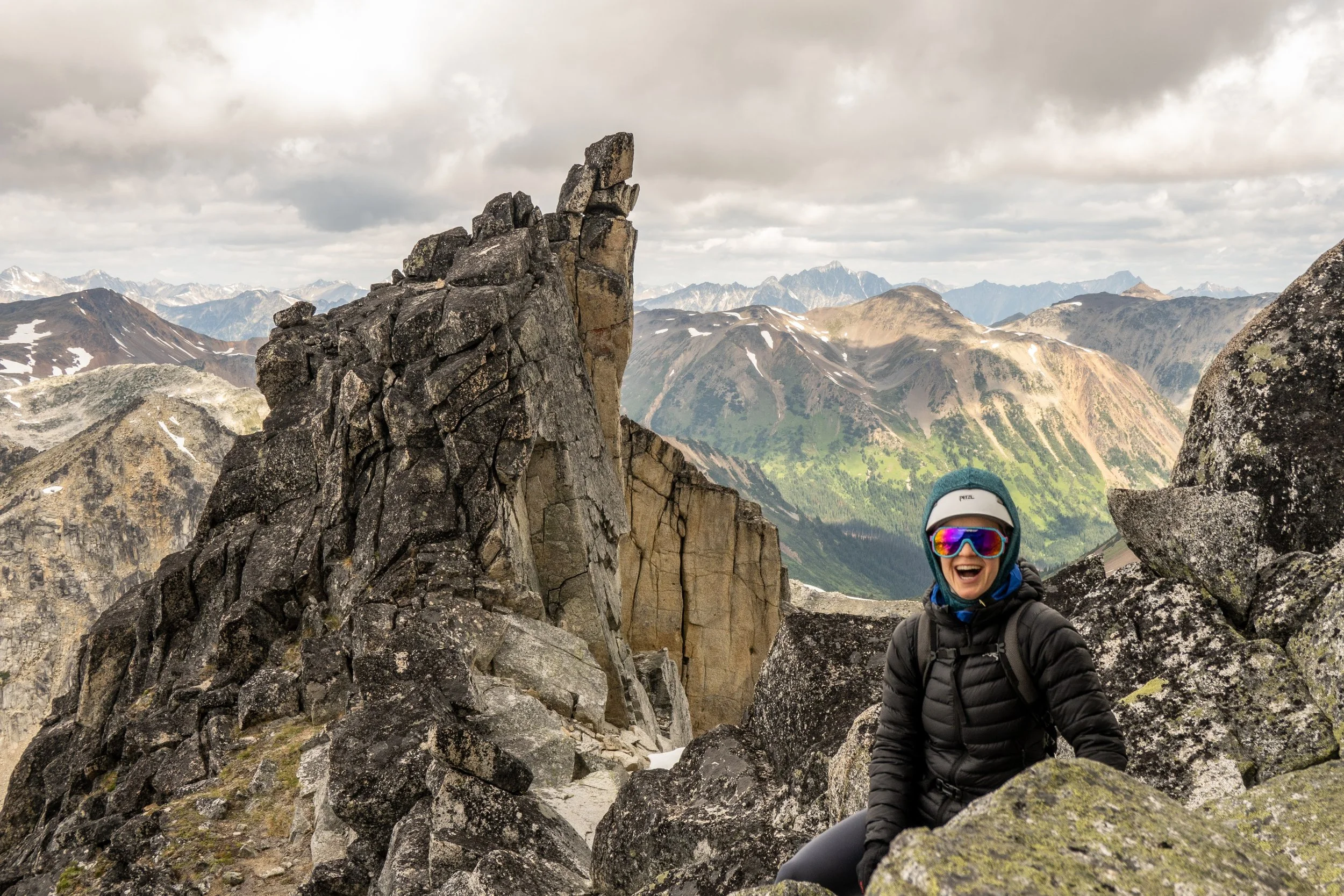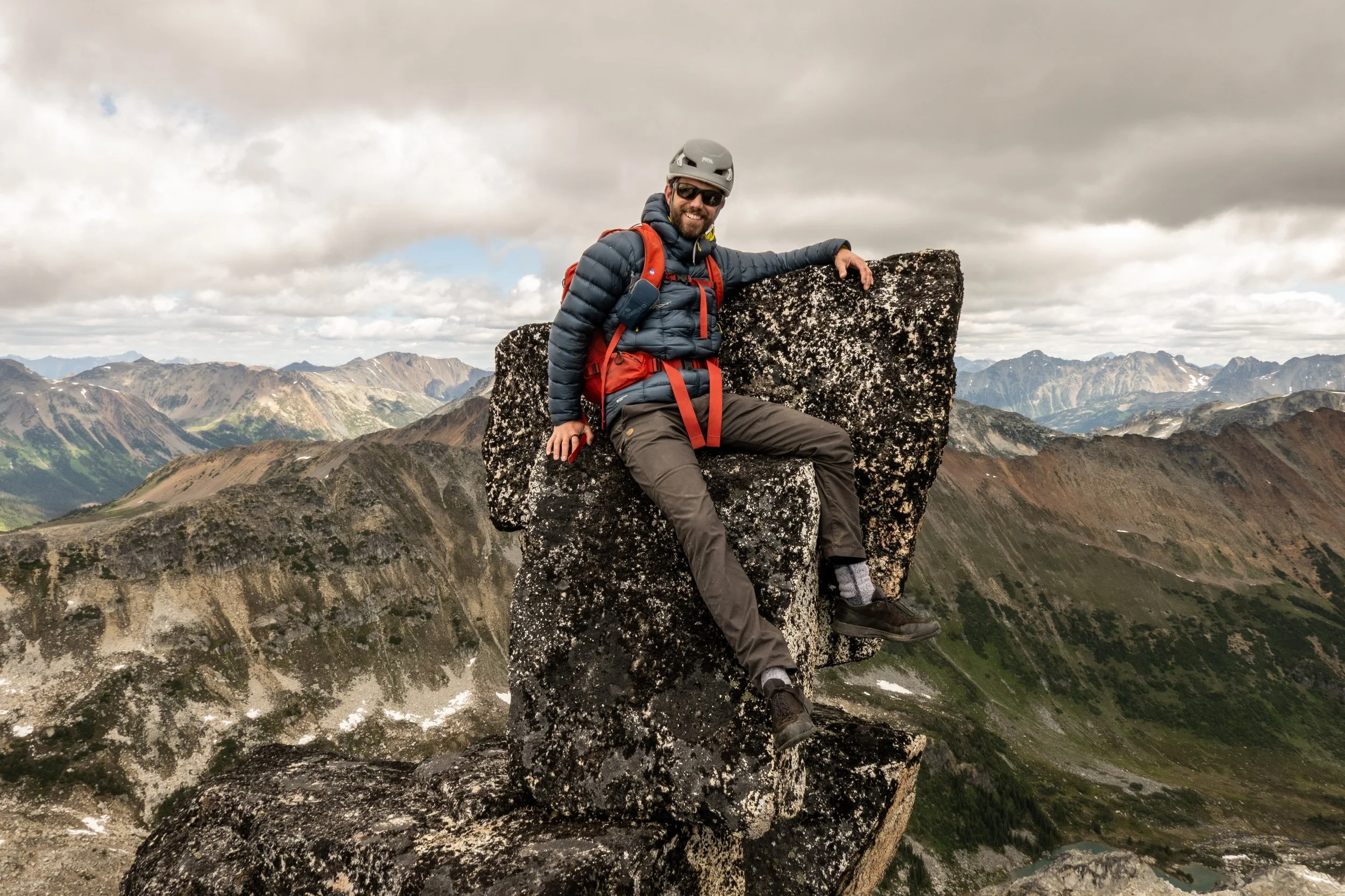 The meat of the scramble up to the summit was super fun and straightforward. A bit of route finding as we tried to ascend too quickly in a few places where staying on a lower traverse was the right move, but generally fun and engaging scrambling right to the broad summit, where incredible views of the area greeted us, with perfect weather for snacks and satisfaction.
