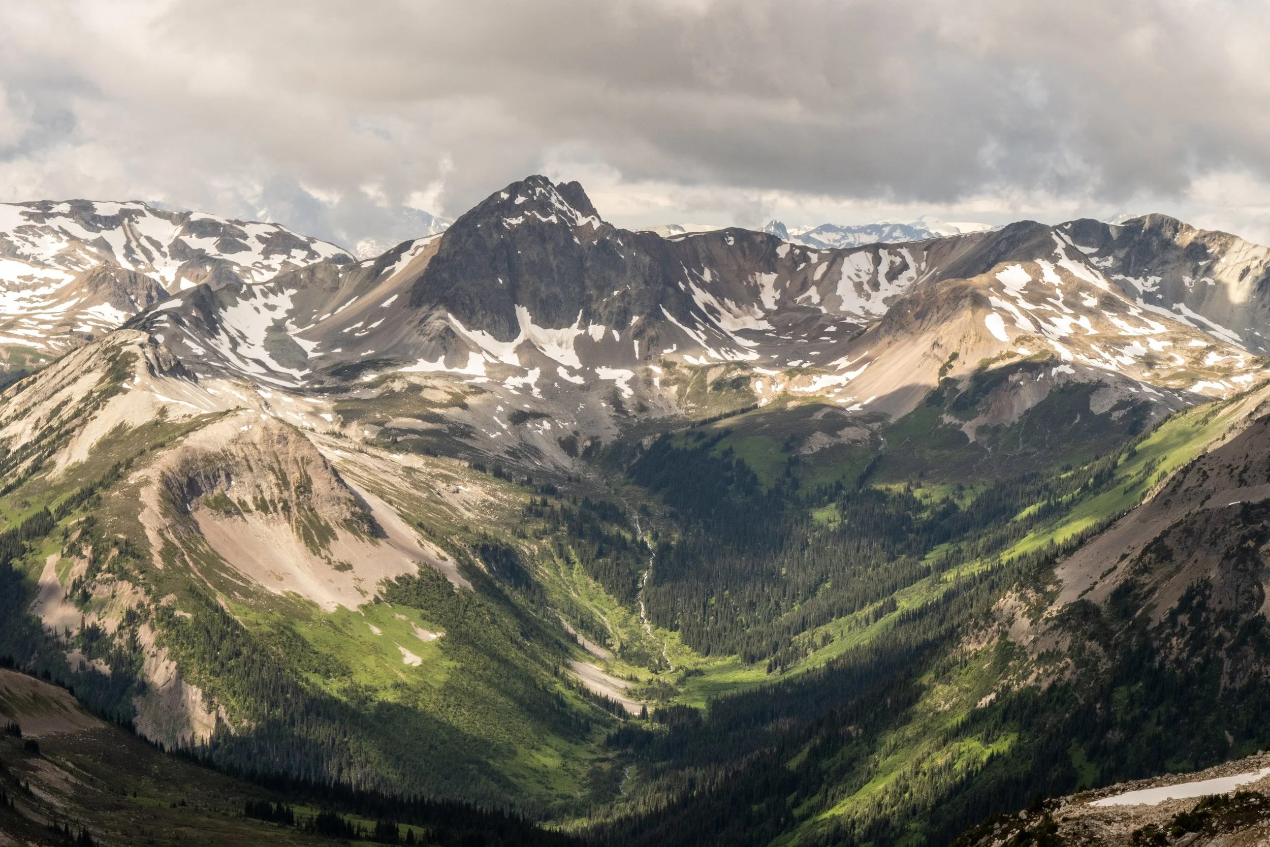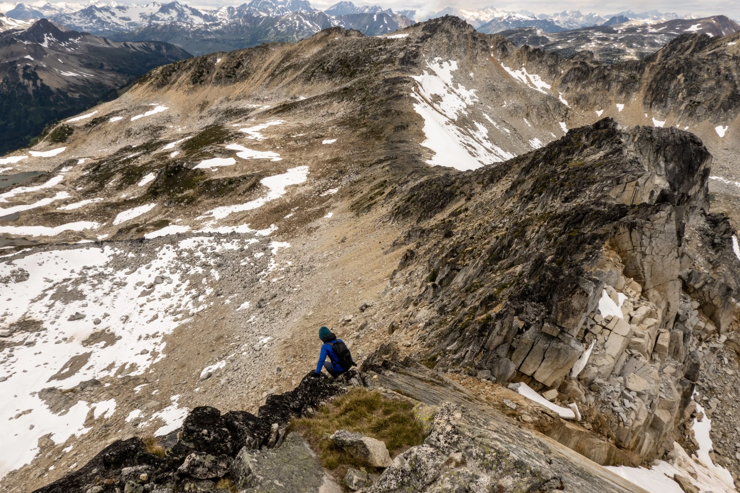 The “alcoholics” traverse starts by ascending from Brandywine meadows to the summit of Brandywine mountain, and continues on a long high alpine traverse past the jagged tooth of Mount Fee to Keg and Brew mountains to finish. A long but not particularly technical 25km point to point. An even longer, more technical option, which includes two more impressive scramble summits along the route, continues along the main ridge towards Squamish, climbing Cypress and Tricouni, before descending to Berg lake and out.
